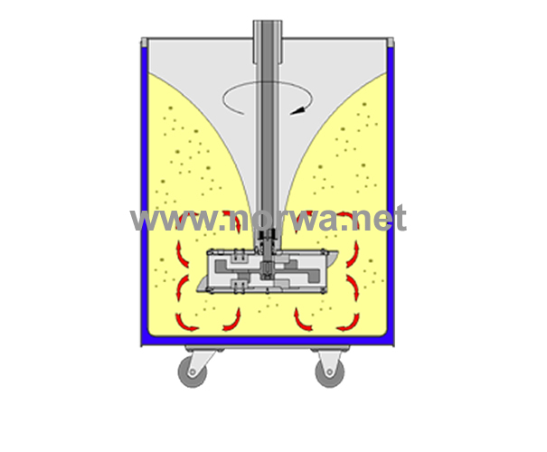 Product inlet via rotor / immersion tube system prevents back flow of grinding media into the feed line.